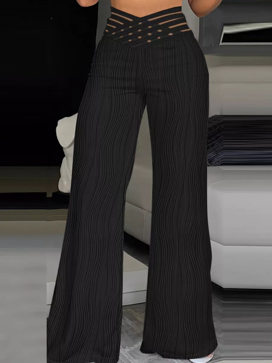 Представляем вашему вниманию очень удобные широкие черные брюки гофре на декоративной акцентной резинке. Эти штаны в рубчик на резинке - идеальный выбор для создания великолепного вечернего или танцевального образа! Они сочетаются с любыми предметами гардероба, и подходят не только на вечер, но и для повседневной носки. Брюки палаццо имеют фактуру в рубчик, но не в прямой, а в виде плавных сходящихся и расходящихся волн.